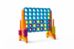 „Vier in einer Reihe“ ist ein beliebter Spieleklassiker, bei dem zwei Spieler abwechselnd Spielsteine einwerfen. Ziel ist es, vier eigene Steine waagerecht, senkrecht oder diagonal in eine Reihe zu bringen. Das Spiel ist leicht verständlich, aber taktisch anspruchsvoll und sorgt für spannende Duelle.