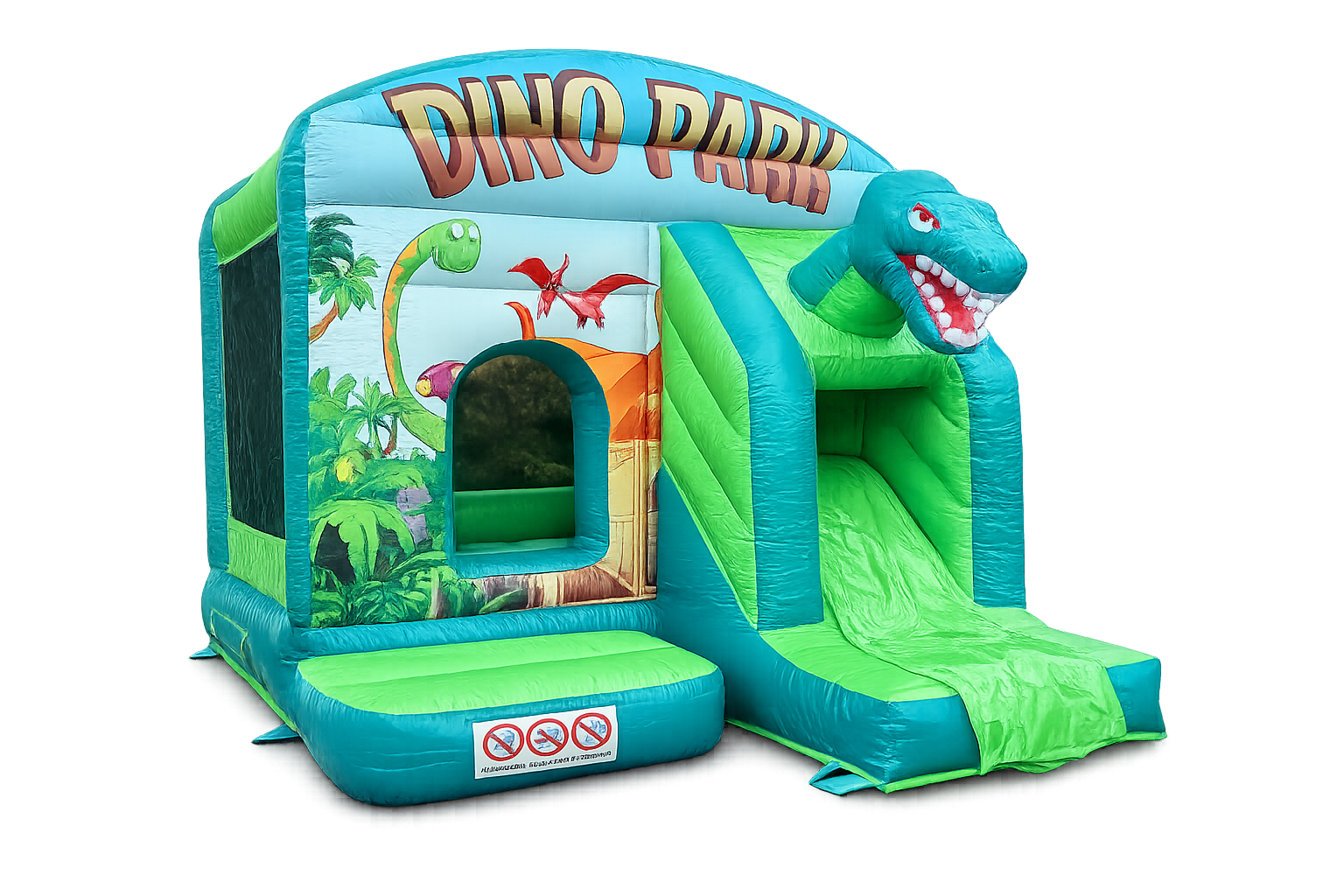 Unsere kleine Hüpfburg Dino ist perfekt für bis zu 6 Kinder im Alter von 6 Jahren. Mit einer kompakten Größe von 3×4 Metern bietet sie ausreichend Platz für Abenteuer und Spaß. Die Hüpfburg ist mit einer aufregenden Rutsche nach draußen ausgestattet, die den Spielspaß noch erhöht. Ideal für Geburtstagsfeiern, Gartenpartys und andere Events, bringt diese Hüpfburg prähistorische Freude und stundenlangen Spielspaß für die Kinder. Sorgen Sie für unvergessliche Momente mit dieser dino-tastischen Hüpfburg!