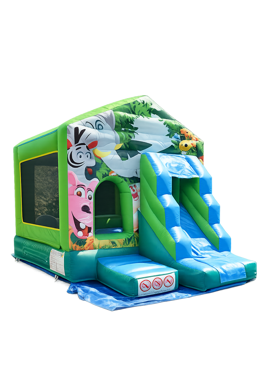 Unsere Hüpfburg Dschungel ist ein spannendes Abenteuer für kleine Entdecker. Mit einer Größe von 3×4 Metern bietet sie Platz für bis zu 6 Kinder im Alter von 6 Jahren. Die Hüpfburg ist mit einer aufregenden Rutsche nach draußen ausgestattet, die zusätzlichen Spielspaß bietet. Das bunte Design mit Dschungeltieren entführt die Kinder in eine fantasievolle Welt voller Spaß und Abenteuer. Ideal für Geburtstagsfeiern, Gartenpartys und andere Events, sorgt diese Hüpfburg für stundenlangen Spielspaß und unvergessliche Erlebnisse.