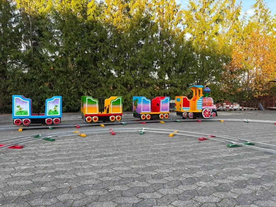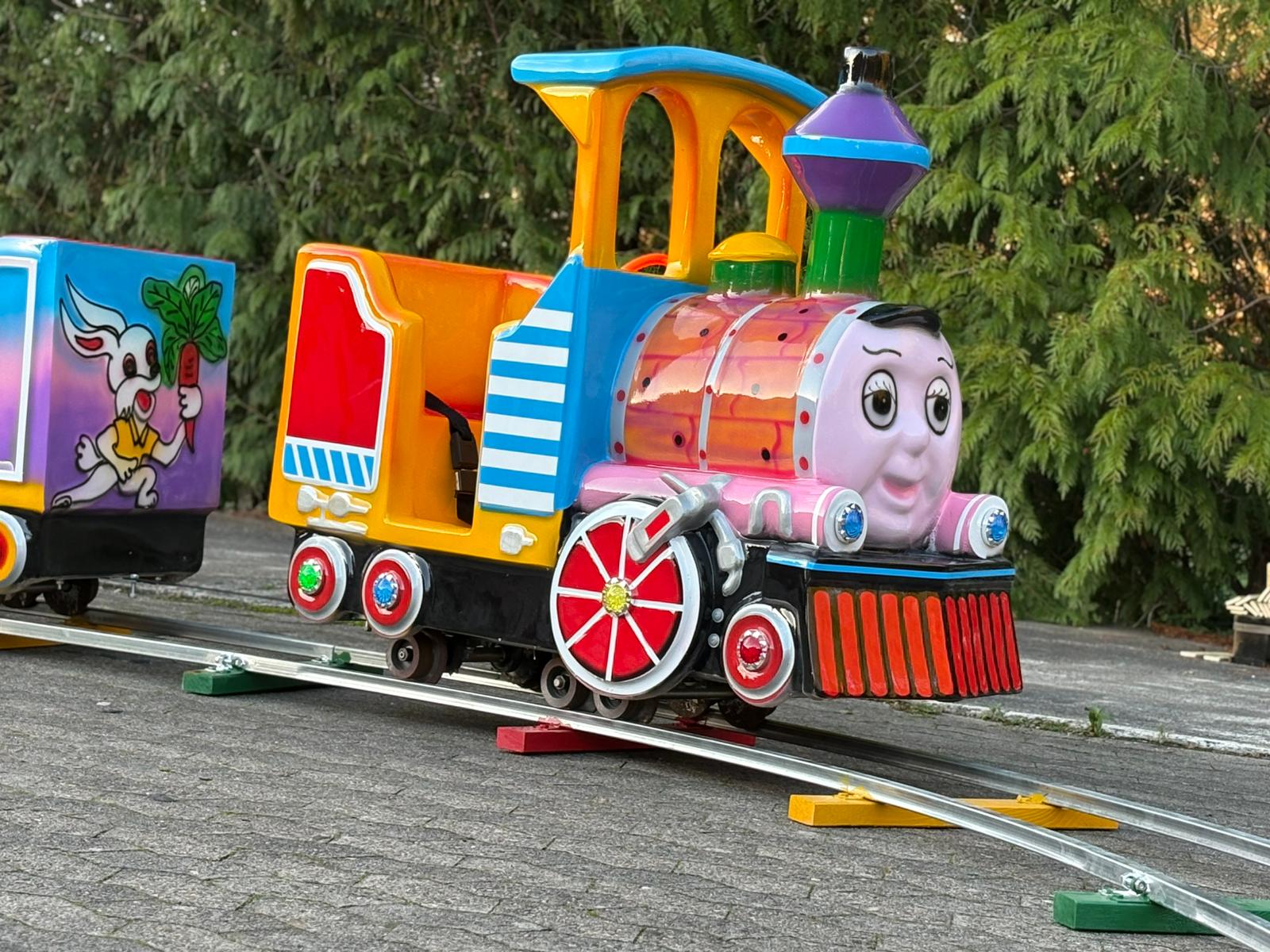 Unsere farbenfrohe Kindereisenbahn sorgt überall für Begeisterung! Die kleinen Waggons, das fröhliche Design und die freundliche Lokomotive laden Kinder dazu ein, in eine kleine Fantasiewelt einzutauchen.