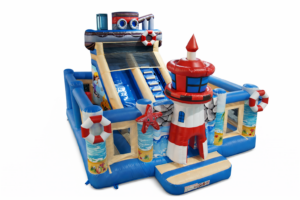Diese farbenfrohe Hüpfburg im maritimen Design mit integrierter Rutsche ist ein echter Blickfang und sorgt für jede Menge Bewegung und Spaß. Kinder können hüpfen, klettern und rutschen und dabei spielerisch ihre Motorik und Koordination fördern.