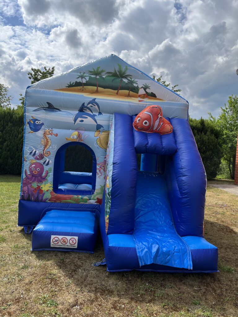 Unsere Hüpfburg Wassertiere ist das perfekte Highlight für kleine Meeresabenteurer. Mit einem einladenden Design im blauen Meer-Thema bietet sie Platz für bis zu 6 Kinder im Alter von 6 Jahren. Die Hüpfburg ist mit einer spannenden Rutsche nach draußen ausgestattet, die für zusätzlichen Spielspaß sorgt.